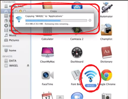 Now click on the WASEL Pro icon. Keep clicking and dragging the icon to drop it in the folder.